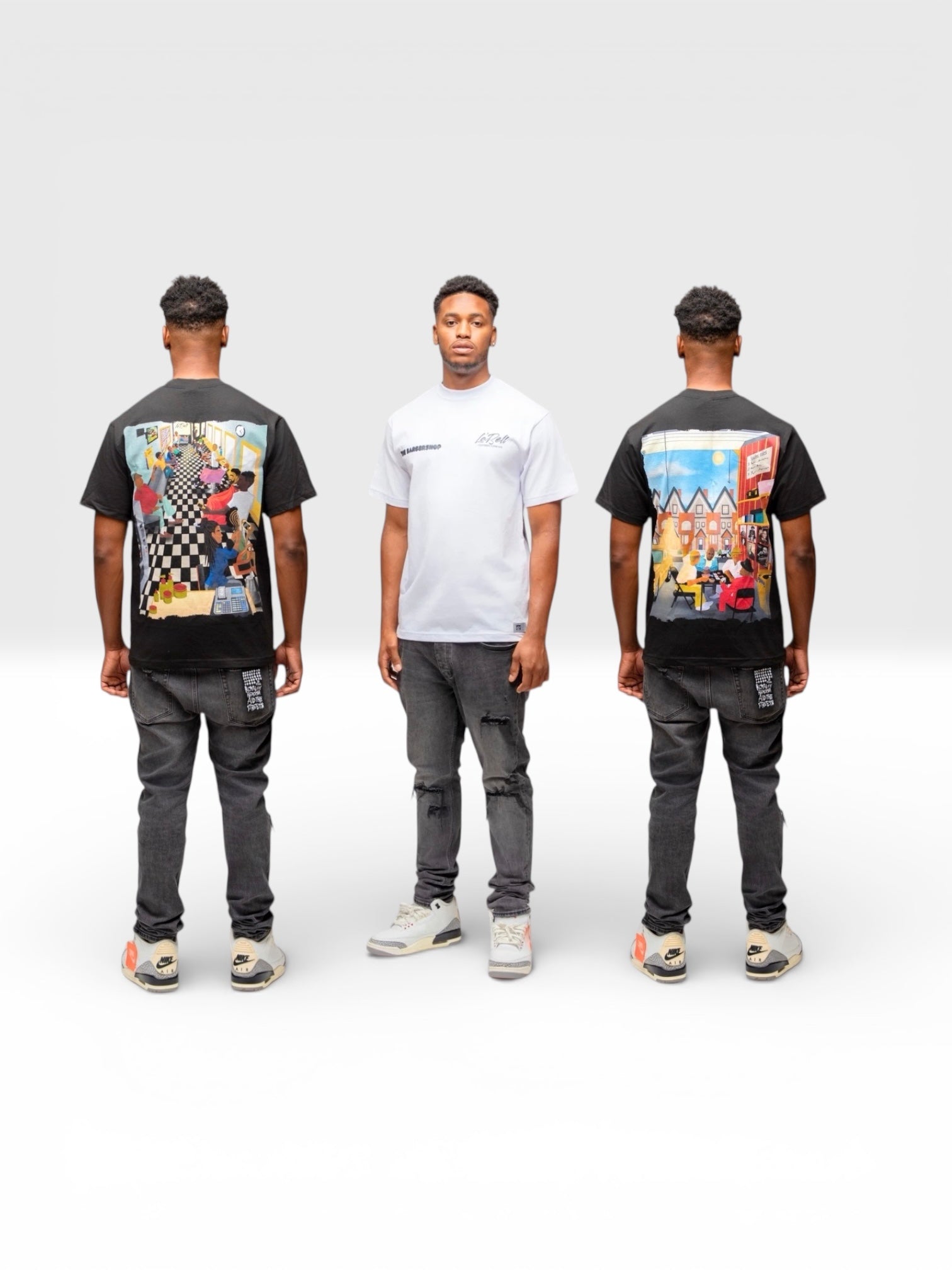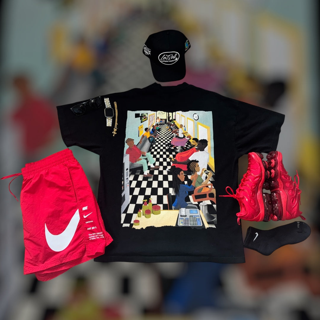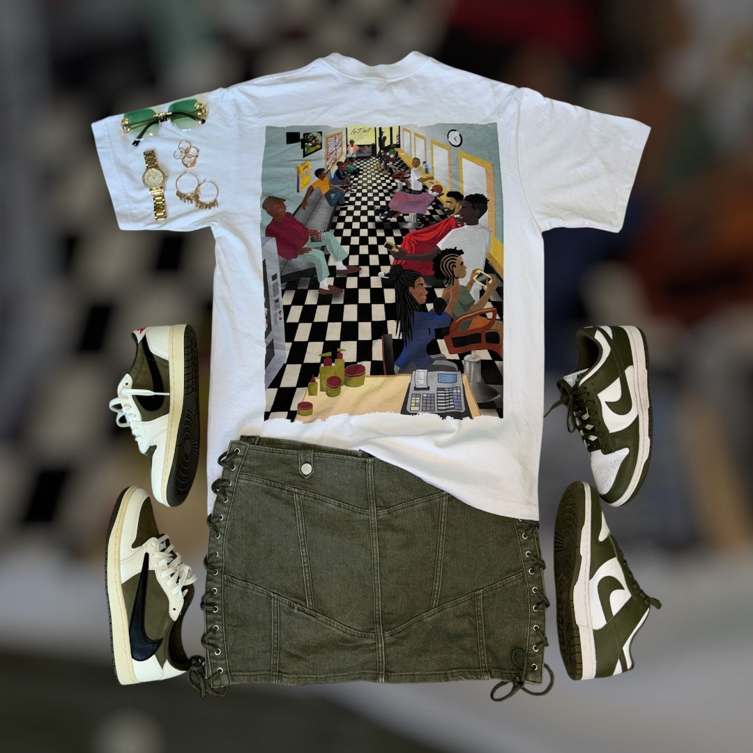 The Barbershop is my favorite, the details are amazing and the colors jump off the shirt!